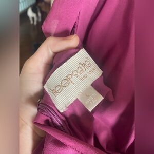 The color is a pink/ violet. Size large. This dress is perfect for summer or any upcoming vacations.