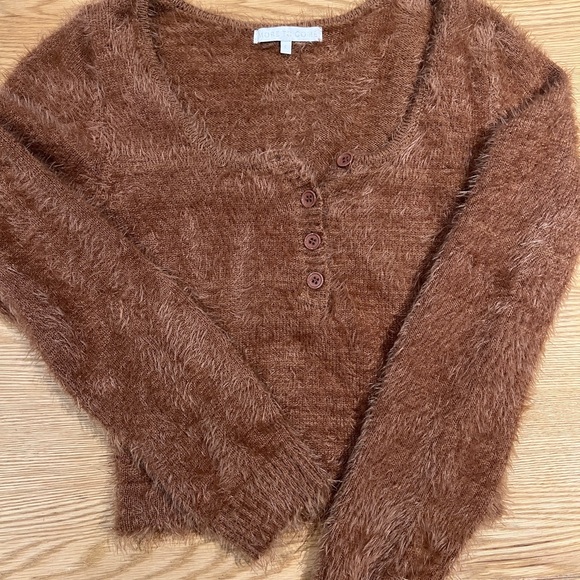 Cozy brown sweater from revolve, super stretch but I would say fits like a medium. Incredibly soft!