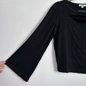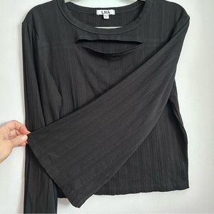 Revolve LNA Ribbed Rayon +Spandex Long Sleeve Crop Shirt with chest cutout