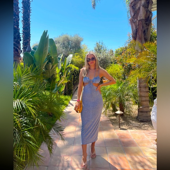 Revolves Song Of Style Blue Ribbed Cut Out Dress.
