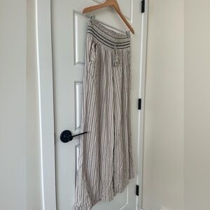 Rewash Striped Linen Smocked-Waist Wide-Leg Pants in size XL.
