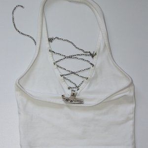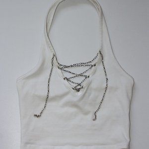 Reworked 2014 Express White Halter Chain Tank Top XS