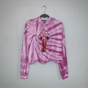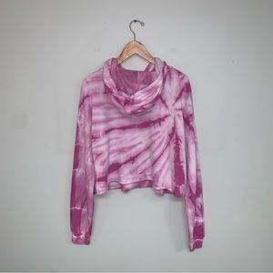 Reworked Cropped Hoodie Size Large Pink Tie-Dye Psychedelic Groovy Sweater