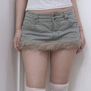 Reworked Faux Fur Green Micro Mini Skirt (6)