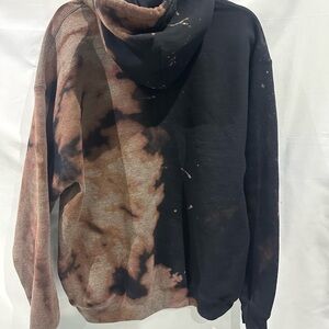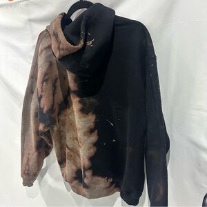 This hoodie was hand dyed with a custom two tone split wash design to give it a second life. Each piece is one of one so no two will ever look the same.