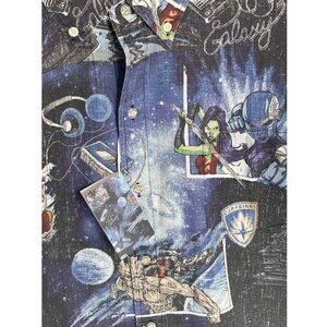 Tags: reyn spooner; guardians of the galaxy; marvel; disney; aloha shirt; hawaiian shirt; camp shirt; button front; short sleeve; menswear; xl; relaxed fit; casual; resort wear; vacation style; printed shirt; collectible; comic; superhero; limited edition; classic fit