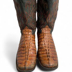 Reywelt Leather Crocodile or Alligator Western Square Toe Cowboy Boots Men's 7.5