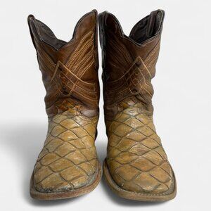 Reywelt Leather Square Toe Pirarucu Fish Pattern Western Cowboy Boots Men's 7.5