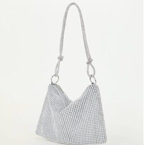Rhinestone Bag With Zipper Silver