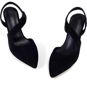 【Pointed Toe Design】: The pointed toe and slingback silhouette form an elegant contour, adding a refined touch to any outfit.