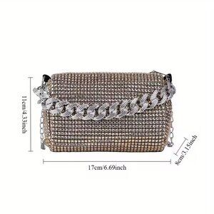 Rhinestone Chain Crossbody Bag for Women - Sparkling Mini Square Purse with Adjustable Strap, Golden/Black PU Evening Clutch, Zipper Closure & Polyester Lining, Versatile Casual to Formal Shoulder Bag, Crossbody Purse, Party Accessory, Elegant Handbag, Durable Lining, Small Handbag, Fashion Lovers
