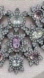 This beautiful piece features a series of oval-shaped rhinestones surrounded by smaller, round rhinestones. The rhinestone colors are stunning in a clear and light purple. Very well made and hangs beautifully. Gun metal backing and chain. Chain max 16”, can be adjusted. No makers mark.