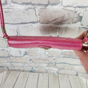 Rhinestone Embellished Crossbody Bag Pink Reptile Envelope Style Barbiecore