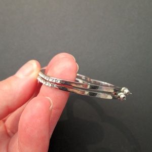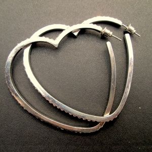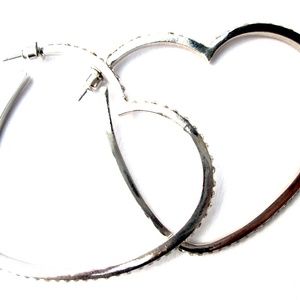 💖💎Rhinestone Heart Hoop Earrings Silver Tone