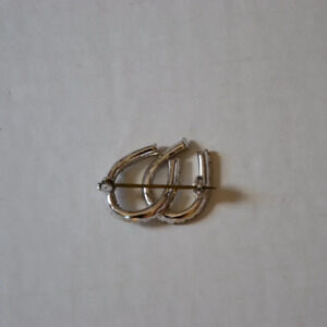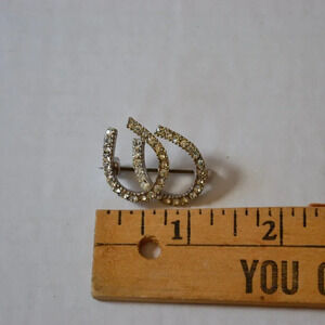 Pin/Brooch featuring two horseshoes both have rhinestones.
