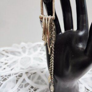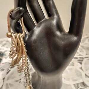 Three tear drop shapes with the centre being rhinestone free. The bottom two chains have decorative rhinestone ends. Perfect for your keys, purse charm or to gift to your bestie who loves all things that shine! 6 inches from top to bottom. So much bling!!