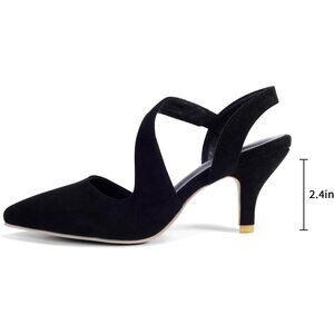 【Comfortable Kitten Heels】: These heels feature a 2.4 inch kitten heel design that ensures all-day comfort without putting pressure on the balls of your feet.