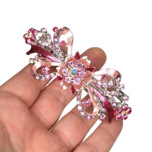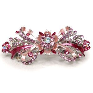 Rhinestone Pink Hair Clip Barrette Prom Party Wedding Bridal Gem