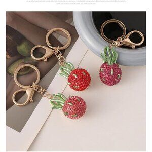 ❤️ Rhinestone Pitaya Purse Charms Women Girl Cute Fruit Car Keyring Holder Bag