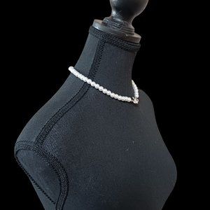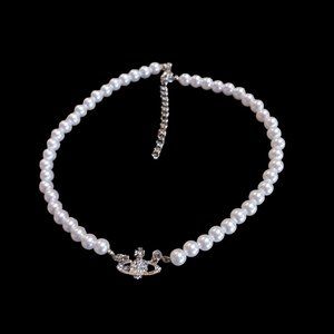 Elegant 17" faux pearl choker with a dazzling rhinestone Saturn pendant. Includes a 2" extender chain for adjustable length and extra charm. Perfect for celestial enthusiasts and stylish occasions.