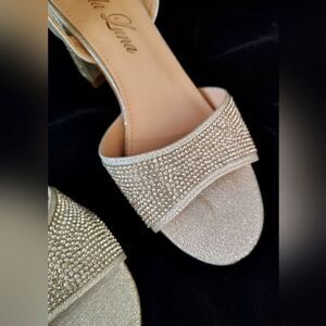 Rhinestone sparkle Silver Chunky Heel Shoes Sandals Sz 6