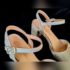 Rhinestone sparkle Silver Chunky Heel Shoes Sandals Sz 6