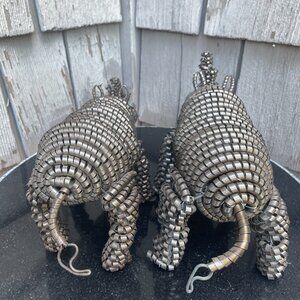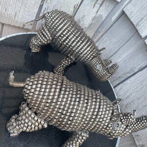 Rhino Rhinoceros Metal Shaving Folk Art Sculpture Lot of 2 Recycled Shaved Metal
