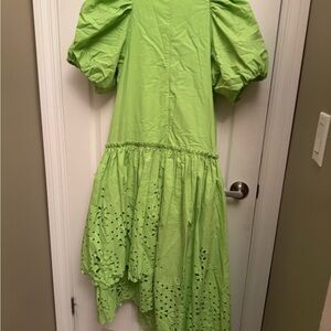 Great condition Rhode lime green high low dress Pockets puff sleeves Bust 19.5” flat