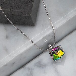 Rhodium Cube Necklace in Vitrail Medium Swarovski Crystal