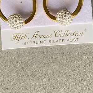 NEW With tag, Fifth Avenue Collection, Rhodium Plated Polished Gold Tone Hoop Earrings with Swarovski Pave Crystal ball, lever back, Sterling silver posts. Free from lead, nickel & cadmium/ Hypoallergenic