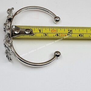 Rhodium Plated Hibiscus Cuff Bangle Bracelet