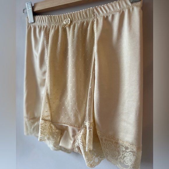 Rhonda Shear Vintage 90’s Yellow Lace Satin Mesh Bow Bloomers Shorts Panty M 2 Piece Set