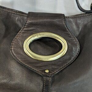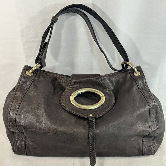 Ri2K Leather Dark Brown Gold Shoulder Purse Bag Adjustable Strap Y2K