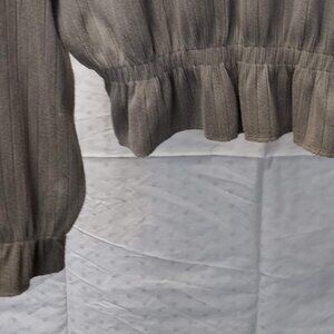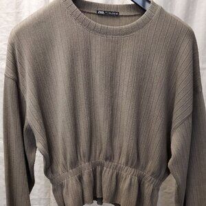 This fun ribbed-knit Zara basic top has a elastic cinched waist and sleeve cuffs. Perfect for day-to-day or accessorized for a night out.