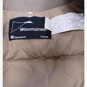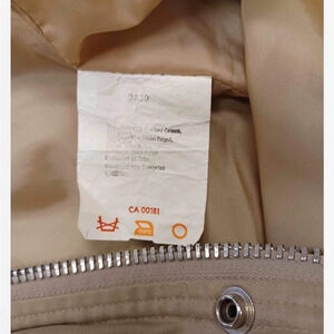 Tan in color, this vintage jacket was made in Canada. Featuring two layers, the outer has long sleeves and a hidden hood. It's got a double zipper and snap closure along with two pockets and a drawstring for your waist.