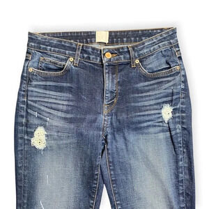 Rich & Skinny Distressed Blue Skinny Jeans with Embroidered Lace Patches