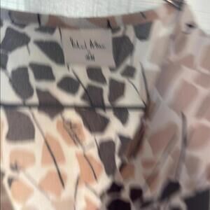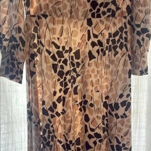 This Richard Allen x H&M dress features a sophisticated design in rich brown, cream and black tones, perfect for casual or work settings. The long bishop sleeves and notched collar add a touch of elegance, while the plunge neckline offers a modern twist. Crafted for comfort and style, this dress is a versatile addition to any wardrobe.