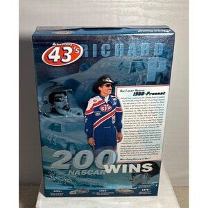 A collector's edition cereal box celebrating Richard Petty's legacy, featuring his iconic 43 car, 200 NASCAR wins, and Victory Junction Gang charity details.