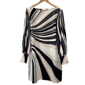 Richard Allan X H&M Black White Tan Printed Swirls Boat Neck Long Sleeve Dress