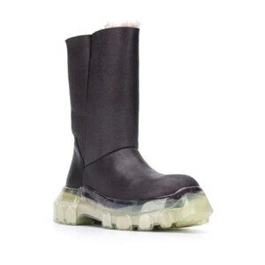 Rick Owens Black Shearling Mega Bozo Tractor Chelsea Boots Defect Size 41 M8 W11
