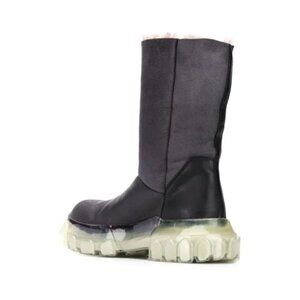 Rick Owens Shearling Mega Bozo Tractor Chelsea Boots in black.