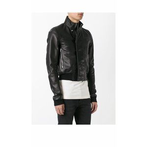 Rick Owens Calf Leather Cropped Bomber Jacket