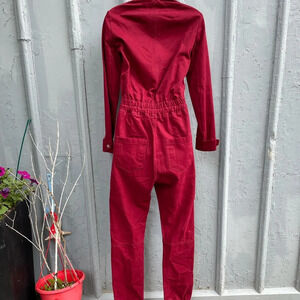 Rick Owens DRK SHDW Tuta Maroon Cotton Twill Jumpsuit, Size XS