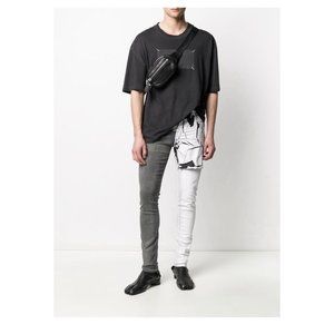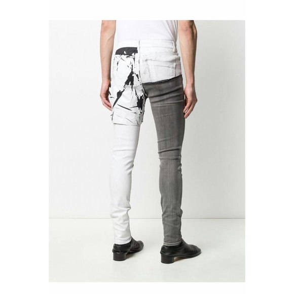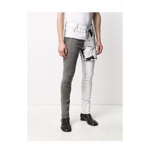 White and anthracite grey cotton blend denim patchwork skinny jeans from Rick Owens featuring a waistband with belt loops, a button and zip fly and a five pocket design.