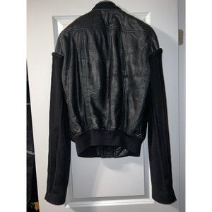 Rick Owens is renowned for his avant-garde aesthetic that pushes the boundaries of traditional shapes. This black cotton-wool blend and lambskin zipped bomber jacket from Rick Owens features a snap fastening, two front pockets, a ribbed hem and cuffs and ribbed long sleeves.