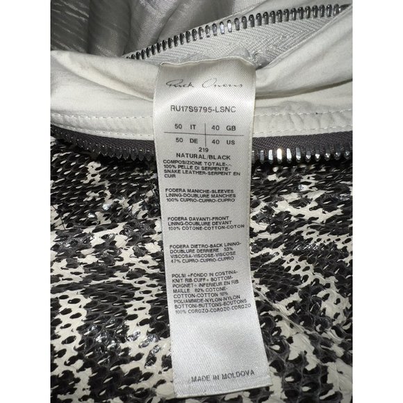 This oblong collar bomber jacket is crafted from 100% snakeskin and features an asymmetric style, a front zip fastening, long sleeves, a ribbed hem and cuffs, front flap pockets and side zipped pockets