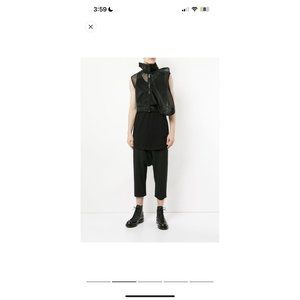 Crafted from a luxury Italian blend of black cotton and silk, this jacket features a sheer mesh construction with an asymmetric buttoned collar, a front zip fastening, a sleeveless design, a cropped length and is finished with a large cargo insert zipped pocket to the left side.