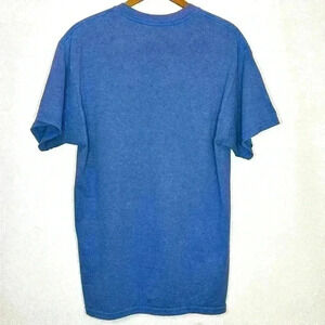 A nicely made T-Shirt in excellent shape. Bright graphics, a nice blue and a soft cotton blend. Adult Large