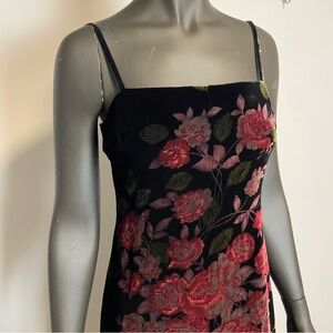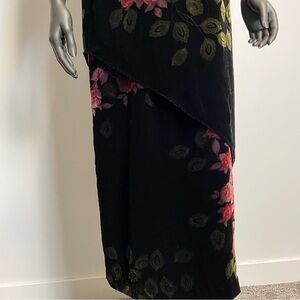 🪽 Rickie freeman Teri Jon nites / vintage silk blend maxi floral velvet dress