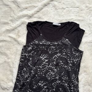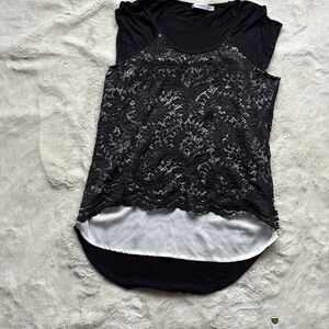 Ricki’s Black Lace Overlay Blouse | High-Low Layered Cap Sleeve Top Size XS